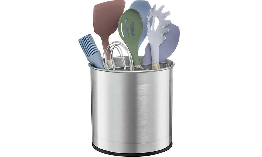 FineDine Rotating Kitchen Utensil Holder for Kitchen Counter – With Weighted Base for Stability, Stainless Steel Cooking Utensil Holder with Removable Divider, Brushed Stainless Steel(Brushed Stainless Steel)