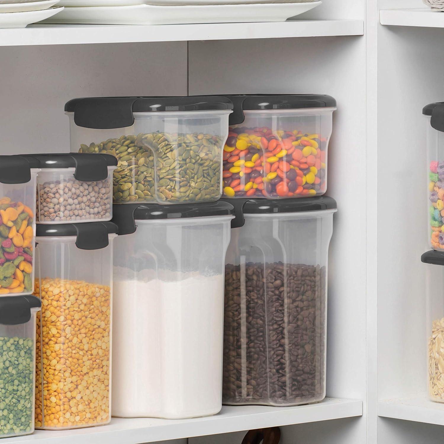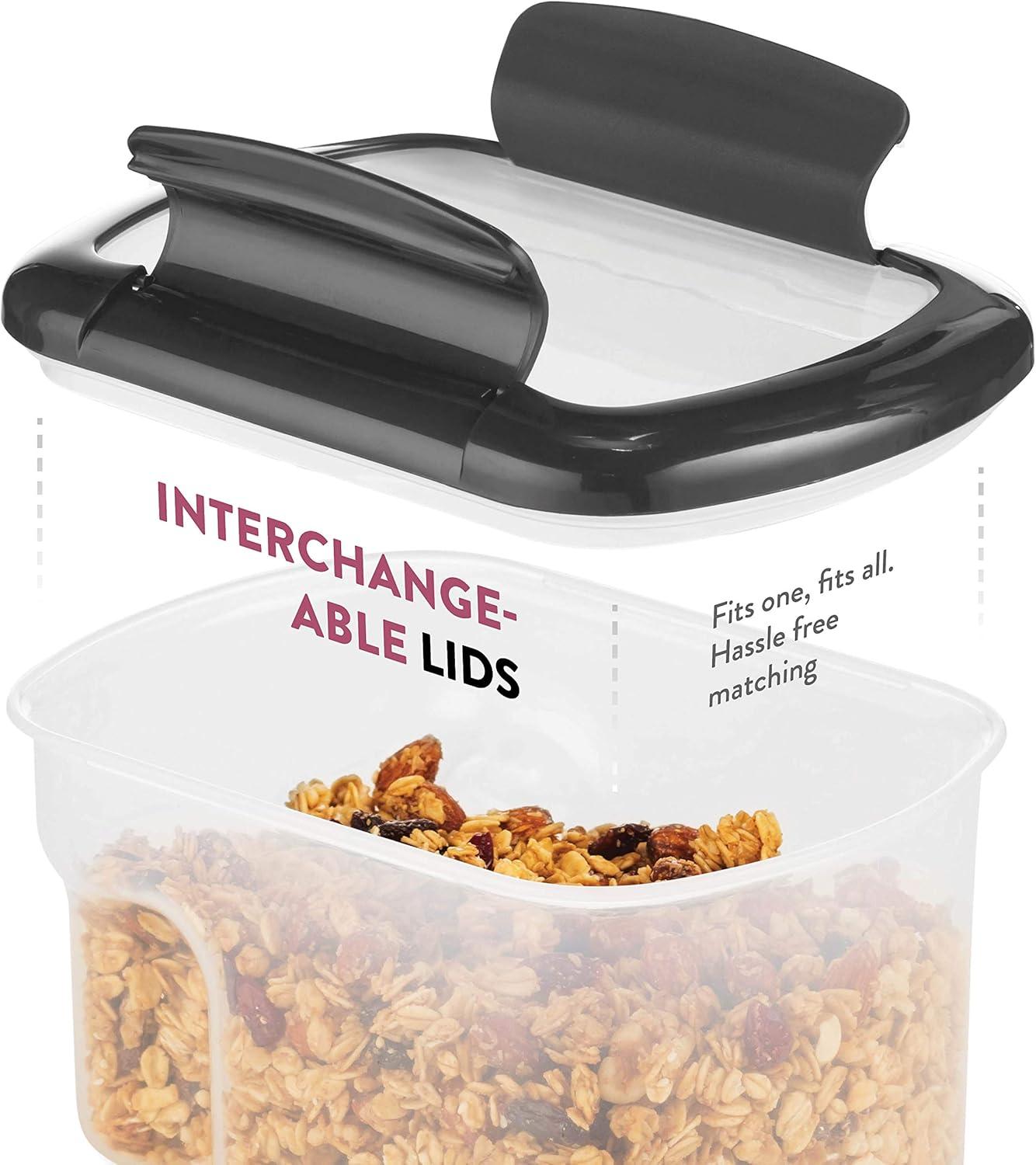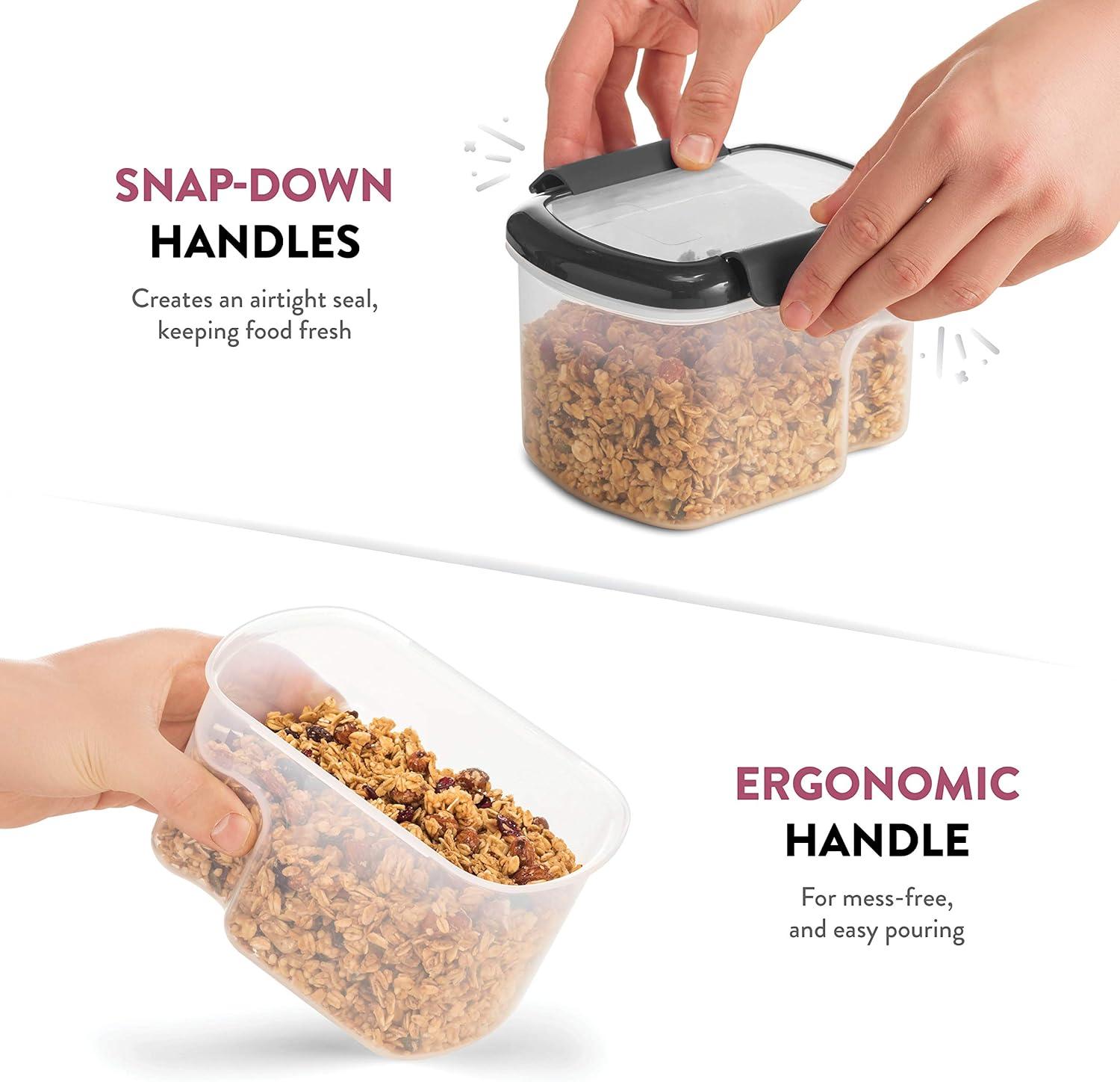 VERSATILE CONTAINERS: This set includes four clear roomy containers. Two are of 108 oz—perfect for flour, sugar, or rice. There are two 54.1 oz containers— just what you need for snacks, cereals, or oats. Lids and containers are interchangeable for ease and convenience.