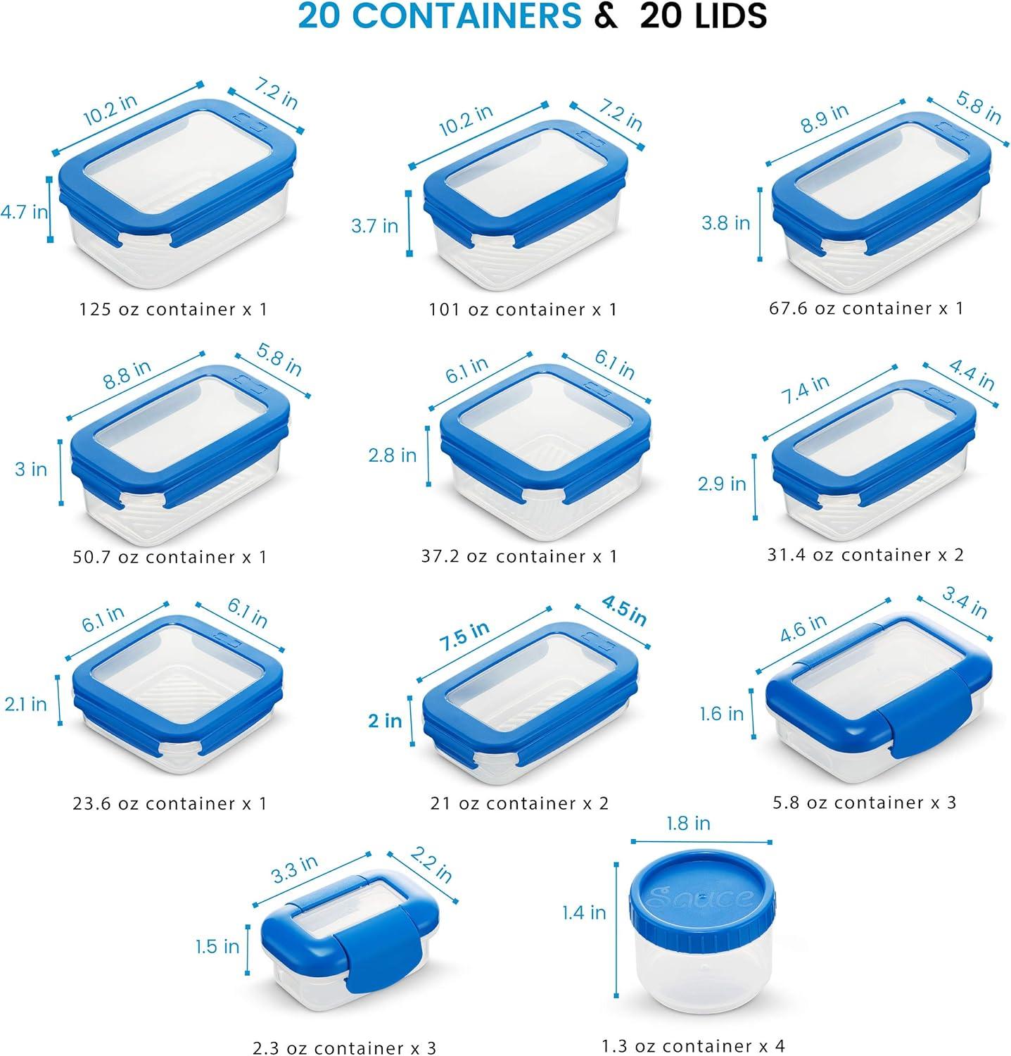 40-PIECE SET: Our set includes 20 containers with 20 lids of various sizes and shapes, perfect for meal prep, storage, and all your food storage needs.