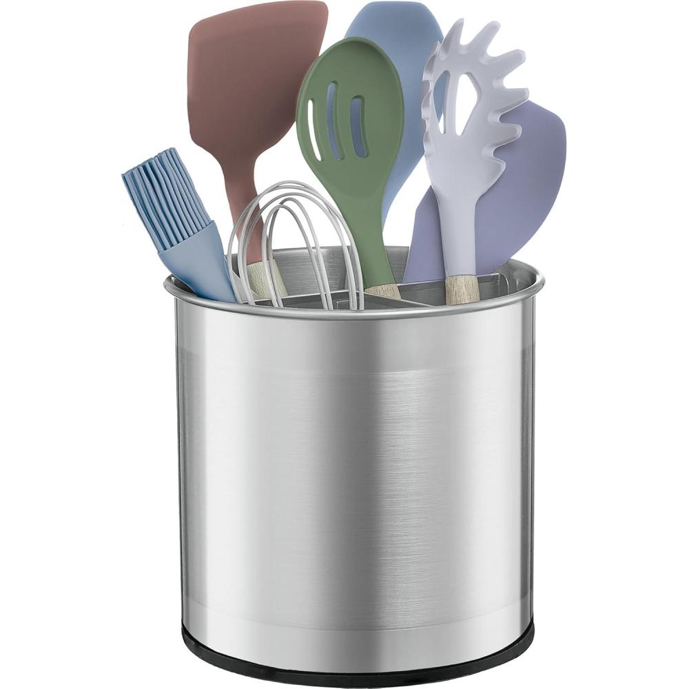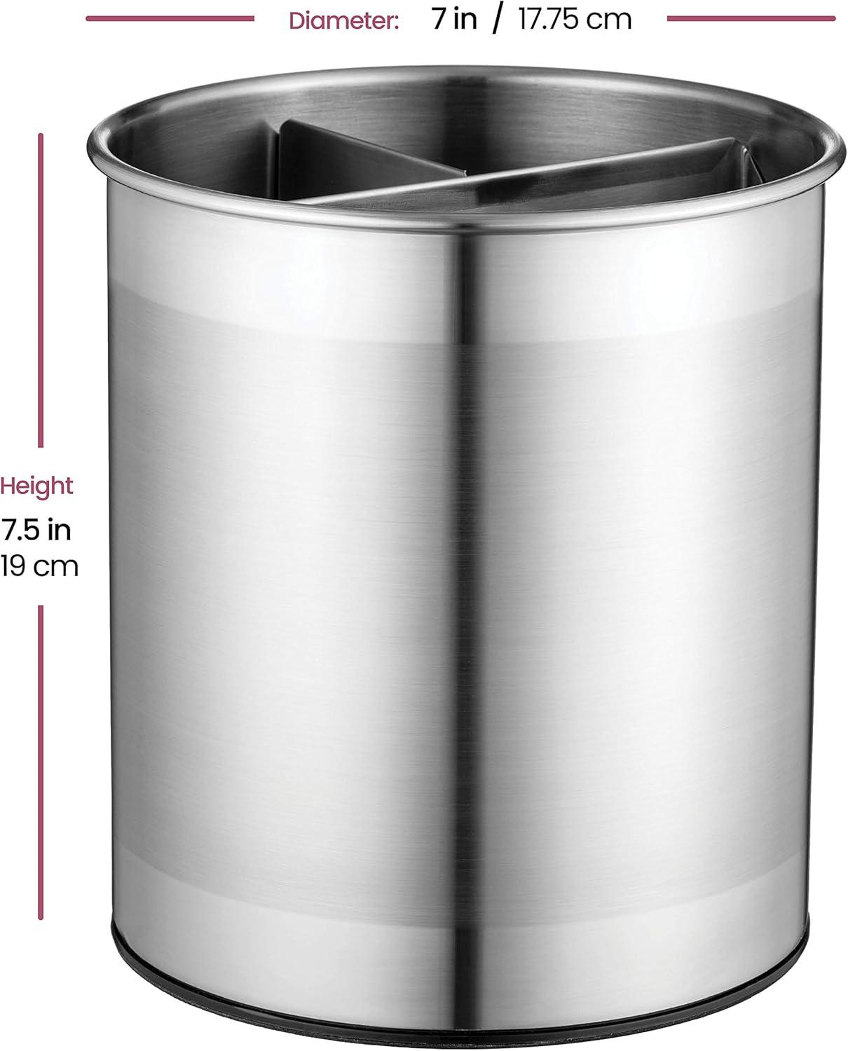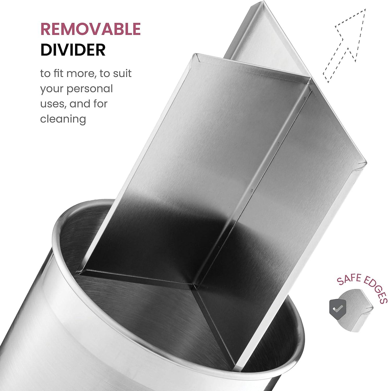 VERSATILE ORGANIZATION- A sturdy divider sections the caddy, enabling you to keep different utensils in different compartments. Divider is removable to fit more and for easy cleaning. Store your spatulas, ladles, tongs, peelers, knives, whisks, can openers, and turners in the manner that suits you best.