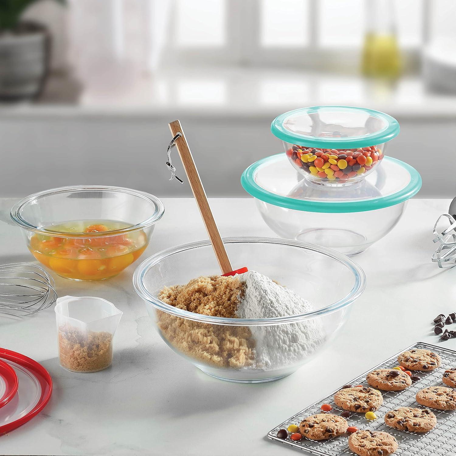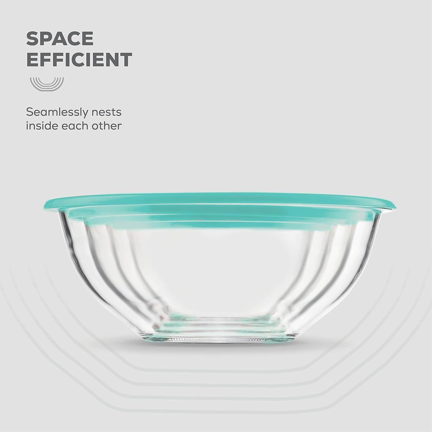 SUPERIORITY of GLASS – Glass bowls are heavier and more stable, so they won’t slip and slide while you mix. Walls are slicker, assuring your batter doesn’t stick to the sides. The bowls won’t absorb odors or flavors of food stored in it and are completely microwave safe without the lids.