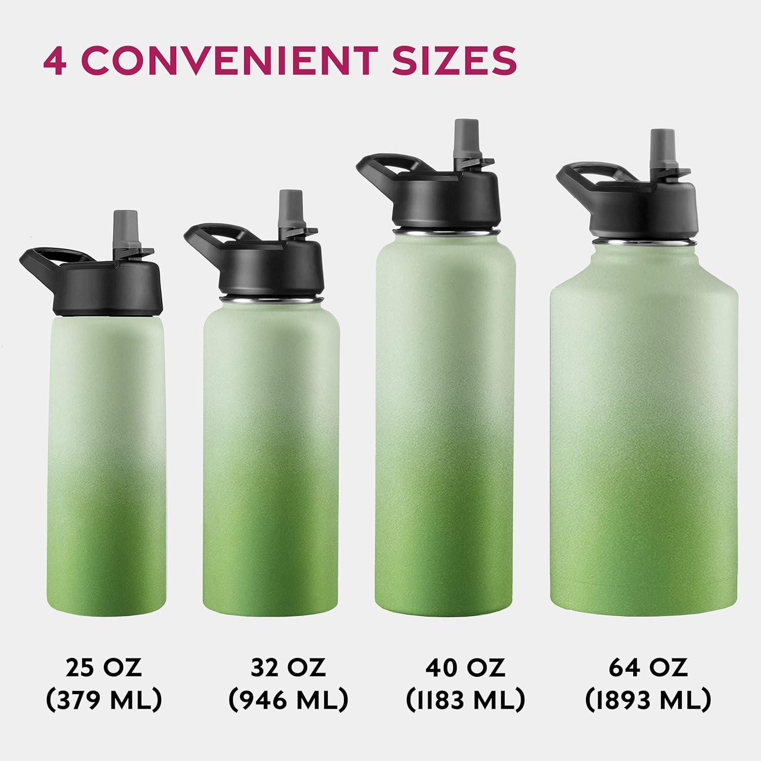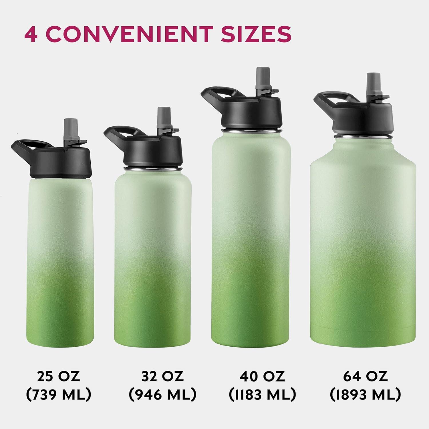 FineDine Triple Walled, Insulated Water Bottles with Straw - 25 Oz Stainless Steel Metal Bottle W/ 3 Leak Proof Lids - For Travel, School, Sports, Gym/Men, Women & Kids - Rustic Grained Sienna(Dreamy Green)