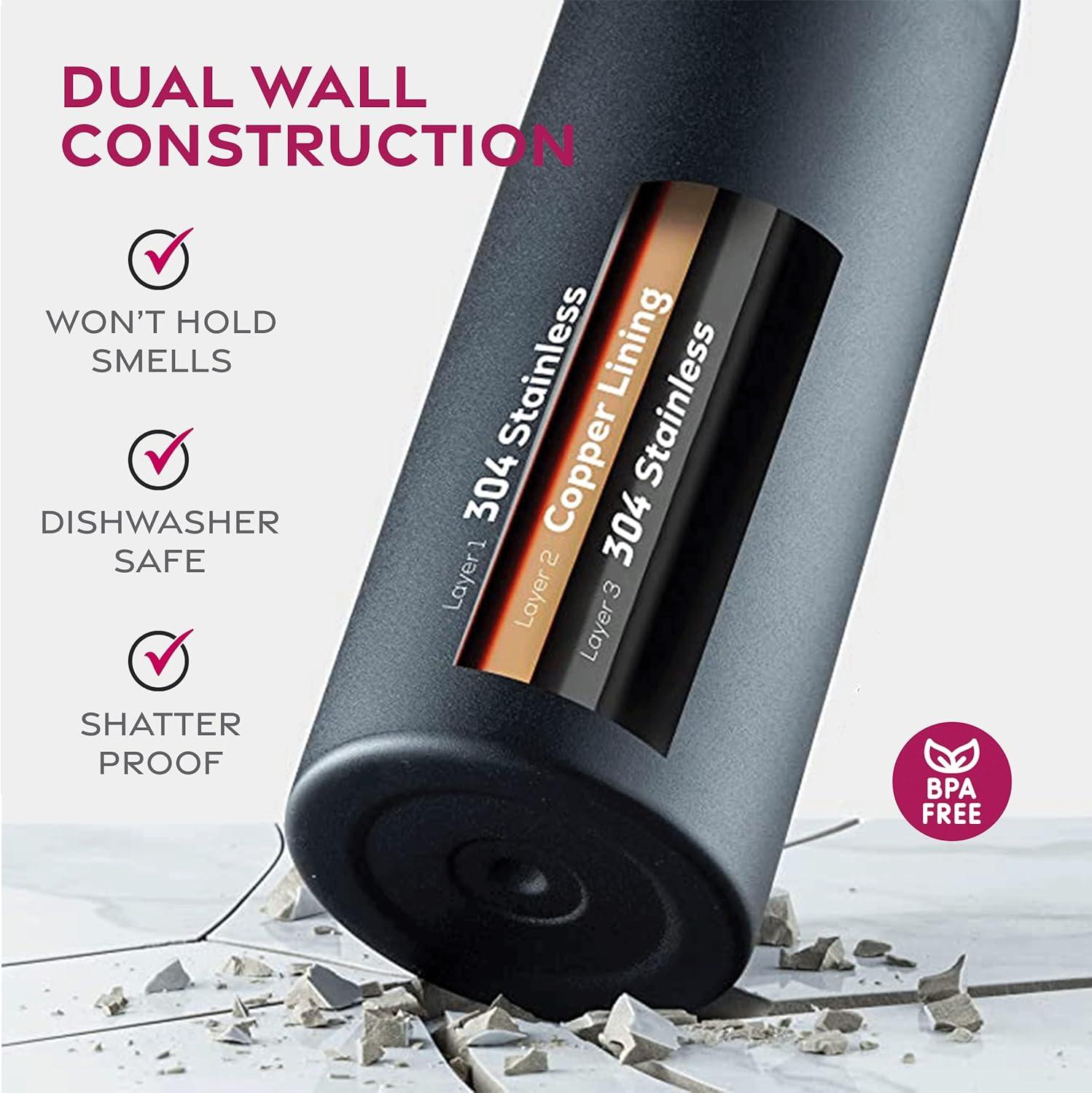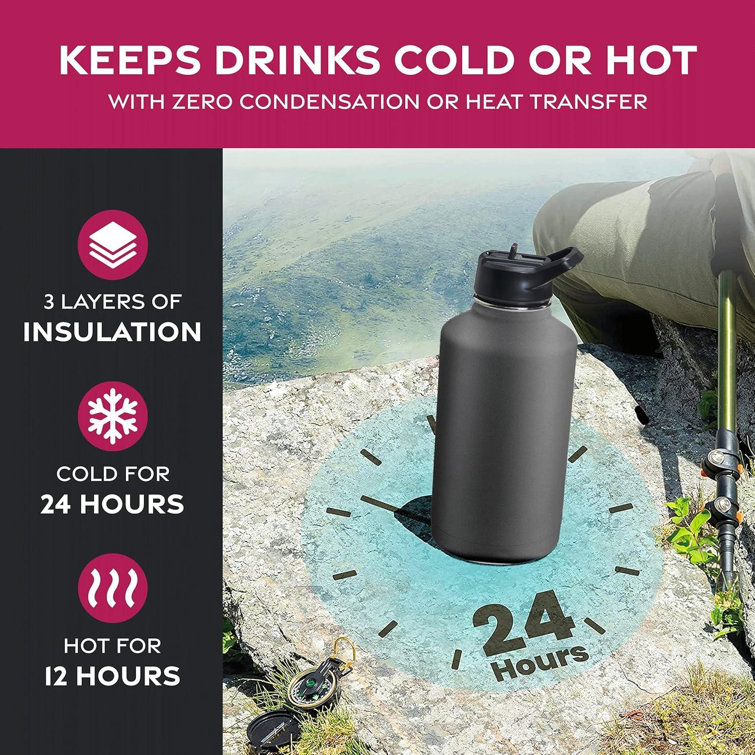 TRIPLE INSULATION: Keep your drinks hot for up to 12 hours and cold for up to 24 hours with our triple walled, insulated water bottles! Enjoy refreshing sips all day long.