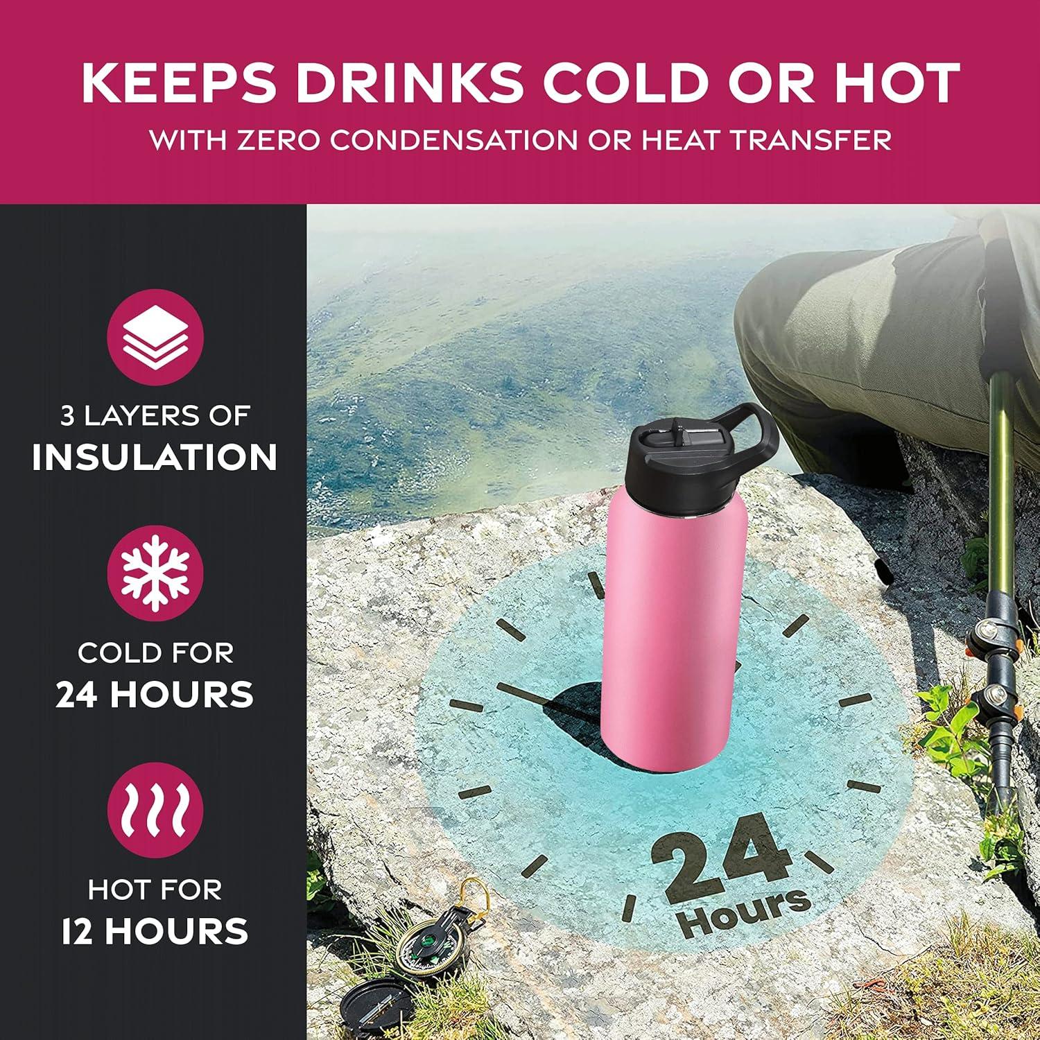 TRIPLE INSULATION: Keep your drinks hot for up to 12 hours and cold for up to 24 hours with our triple walled, insulated water bottles! Enjoy refreshing sips all day long.