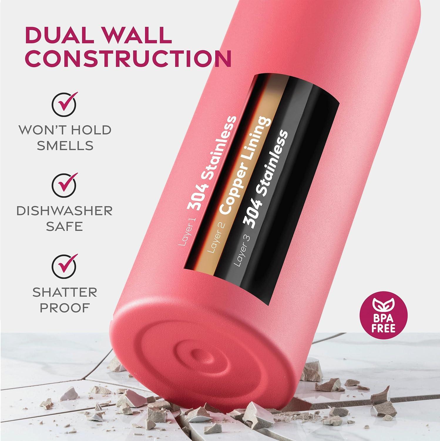 DURABLE DESIGN: Our leak-proof and shatter-proof bottle is perfect for rough-and-tumble use. It's safe in backpacks, beach bags, or on countertops. The color powder coats are sweat-free and scratch resistent. Plus, it's dishwasher safe!