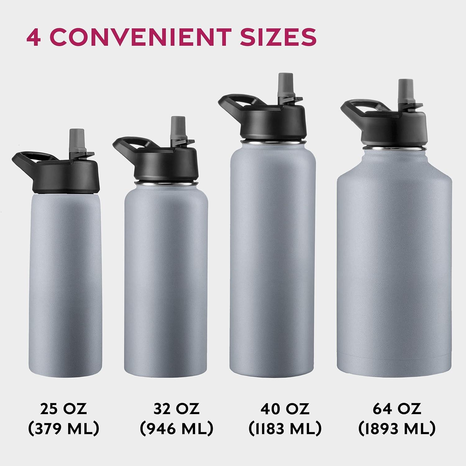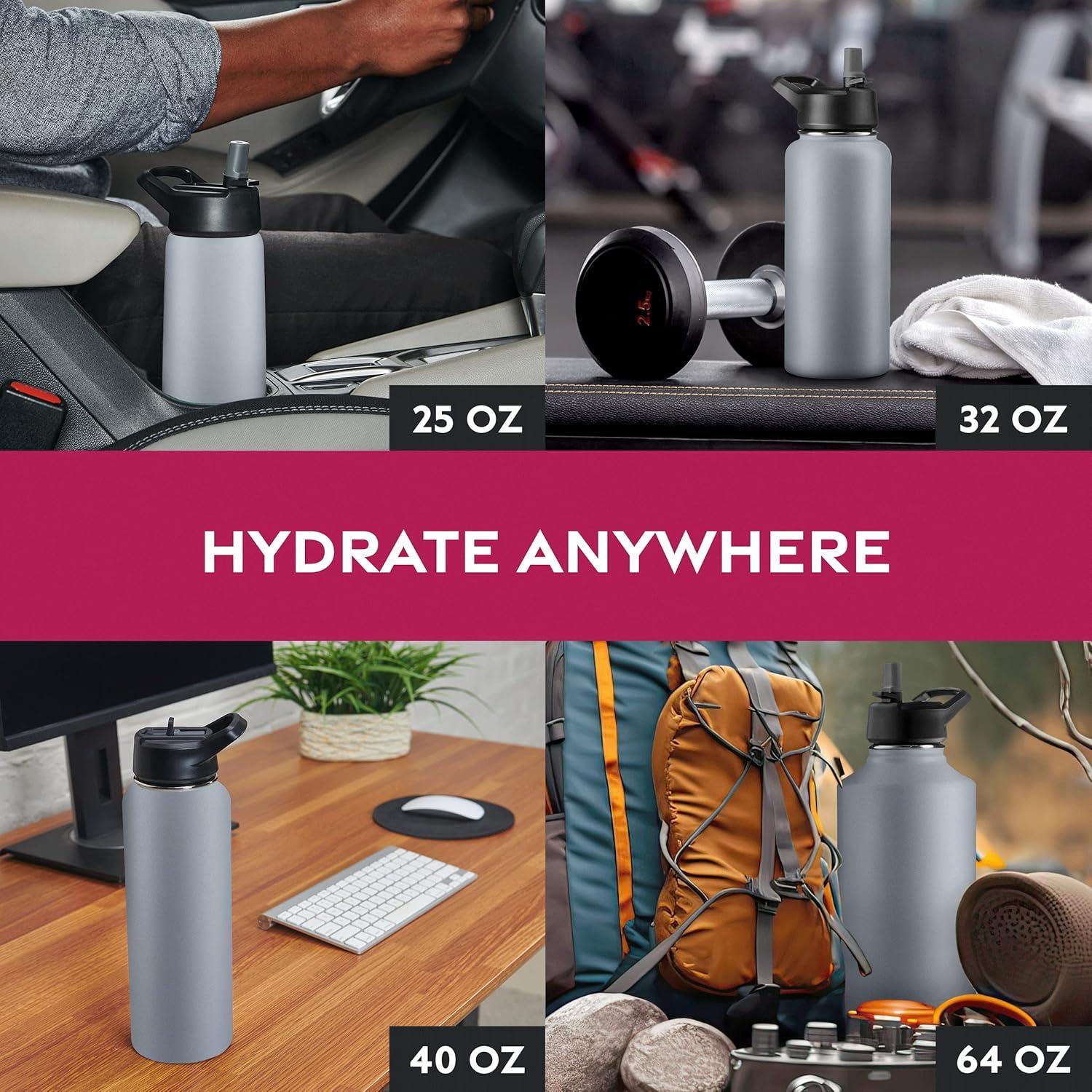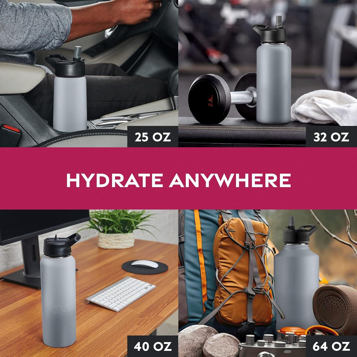 TRAVEL-FRIENDLY: Carry it with ease or attach it to a backpack with the built-in handle. The large capacity makes it perfect for hikes, bike rides, camping trips, or the gym. NOTE: Only the 25 Oz size fits in standard cupholders.