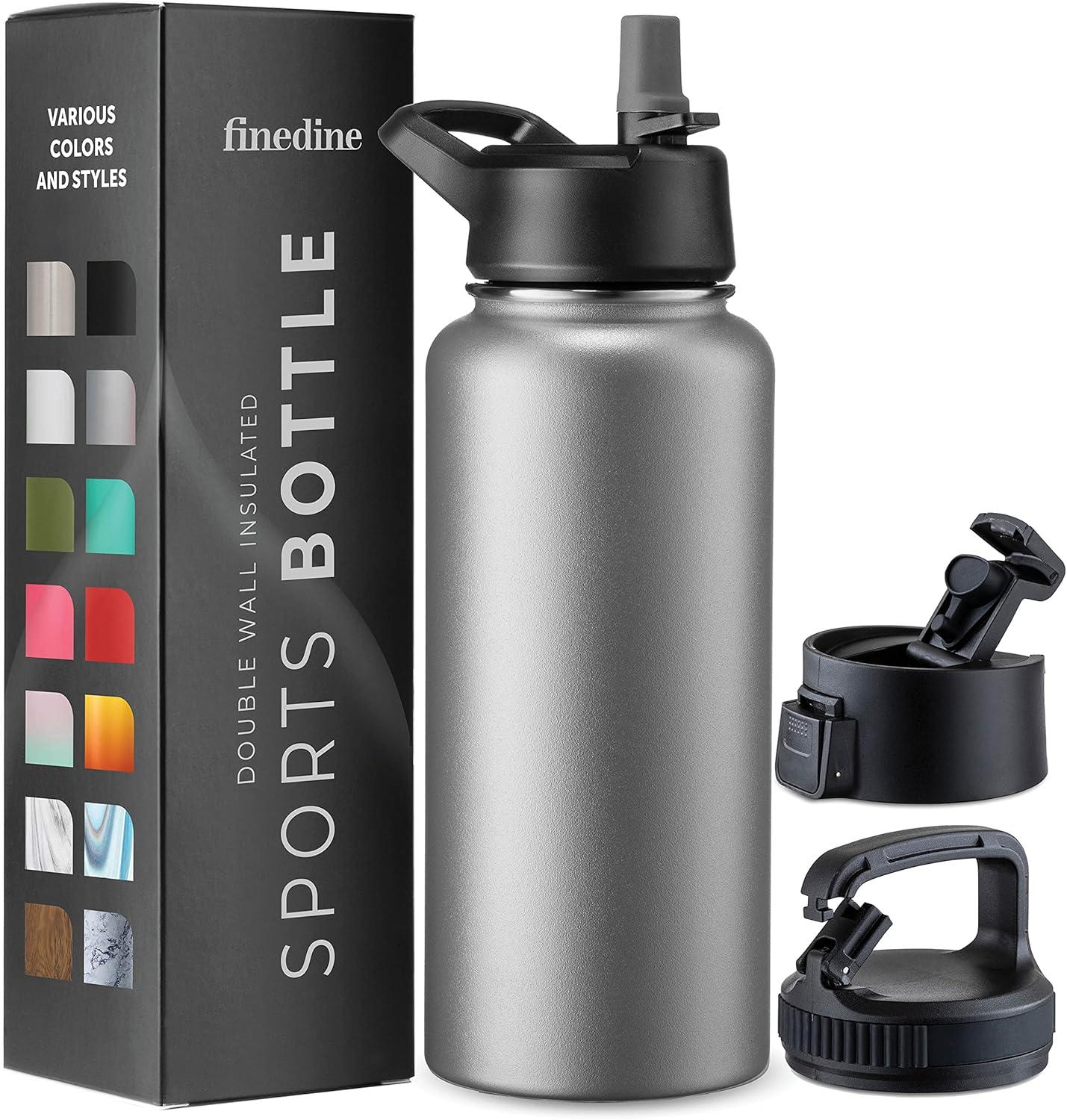 imageFineDine Water Bottle  Stainless Steel Insulated Water Bottle with Straw Lid Flip Lid ampamp WideMouth Cap  Keeps Hot and Cold  25 Oz  739ml  Army GreenModern Lava Gray