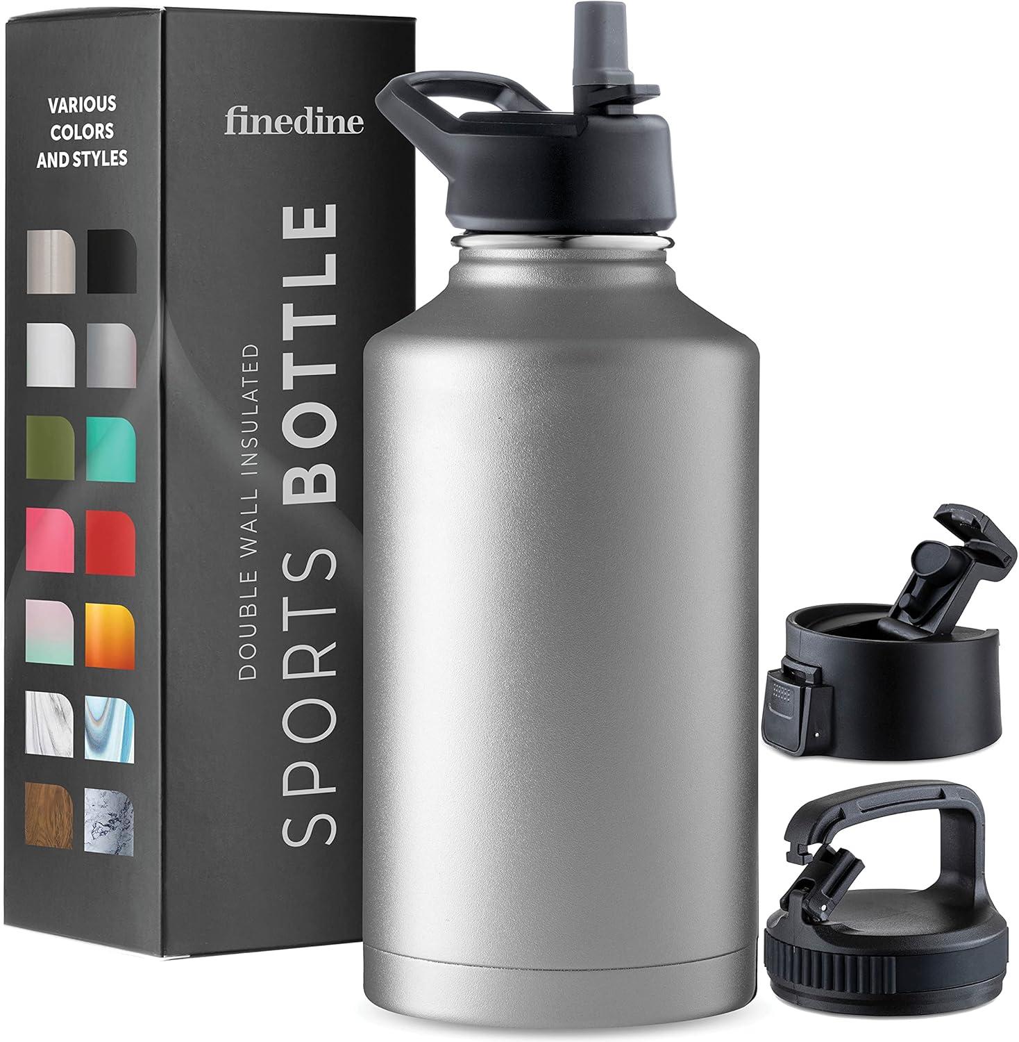 imageFineDine Water Bottle  Stainless Steel Insulated Water Bottle with Straw Lid Flip Lid ampamp WideMouth Cap  Keeps Hot and Cold  25 Oz  739ml  Army GreenMajestic Sapphire